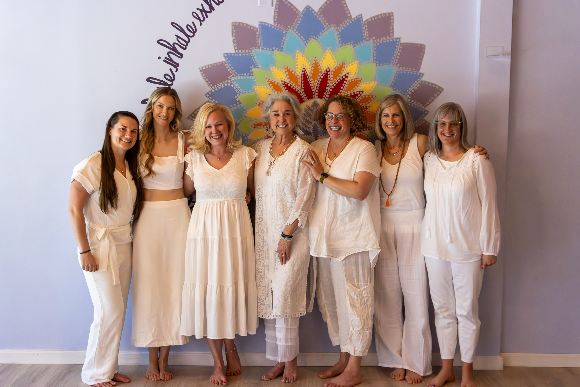 I’m the third one in from the left, standing with my YTT-200 classmates on our graduation day with our beloved teacher, Loretta Jo (middle).